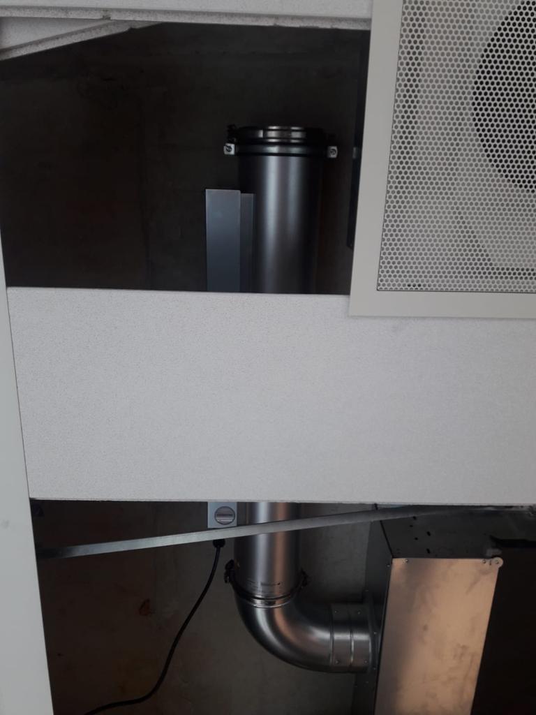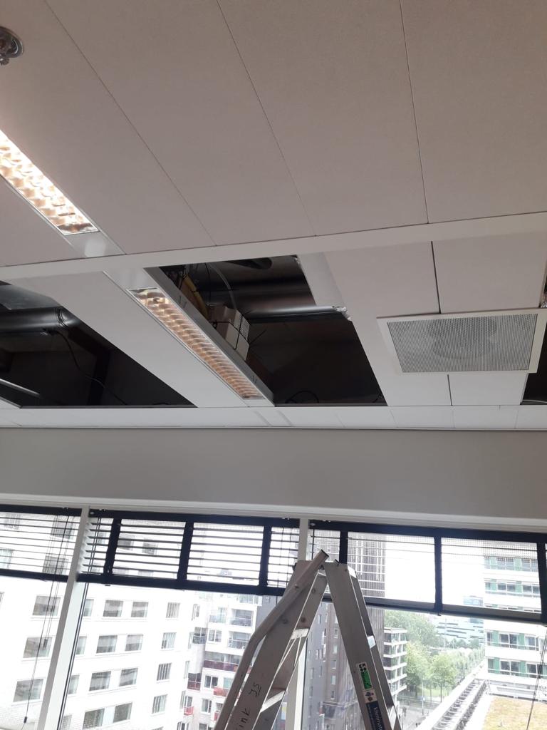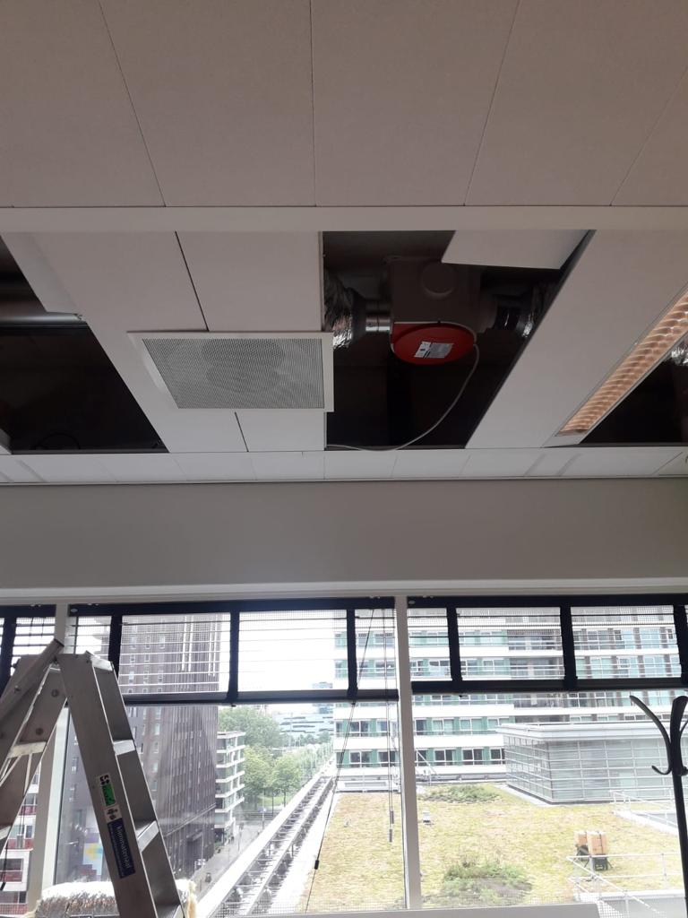 In veel gebouwen wordt lucht ingeblazen en afgezogen via het plafond door middel van fan coil units, die ook wel ventilatorconvectoren genoemd. Met deze oplossing circuleert de meeste lucht op hoofdhoogte, wat je wilt voorkomen vanuit het corona-perspectief; als aerosol verspreidt het virus verspreidt zich zo naar alle mensen in de kamer. Maakt jouw kantoor gebruik van fan coil units dan kunnen we deze eenvoudig aanpassen. Via nieuw te plaatsen kanalen langs de wand zuigen we gebruikte lucht niet boven het plafond af maar dicht bij de vloer. Daardoor buigen we de horizontale flow om in een downflow en worden alle aerosolen naar beneden gezogen. De afgezogen lucht wordt vervolgens gezuiverd voordat deze zijn weg vervolgt in de bestaande installatie.